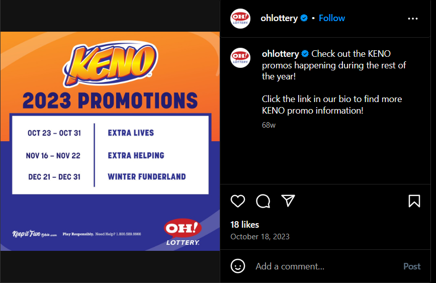 KENO Promo Social Examples: